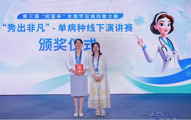 近日,2025年罕见病国际交流会(IRDCC)在海南省海口市举行,基础医学院医学生物学教研室汪萍、林爱琴两位老师参会,并荣获第三届“闰笛杯”全国罕见病科普大赛“秀出非凡”单病种线下演讲赛最高奖“非凡奖”。